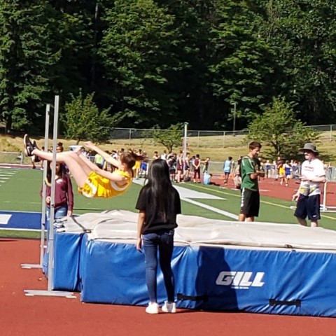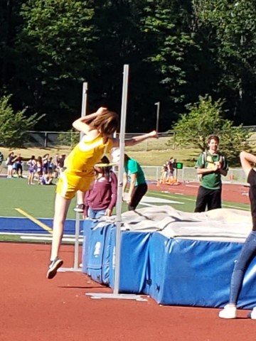 After trying out a few things, she ended up liking high jump and long jump the best. She struggled with sore ankles a lot of the season, but still did well at each meet.