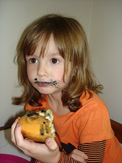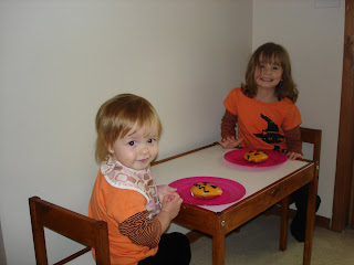 When Tom and I were up in Seattle on our date the other evening, we enjoyed some burgers at Red Mill Burgers and then driving home, stopped at Krispy Kreme. They had the cutest pumpkin doughnuts, so we decided to get them for the girls. The black frosting they used for the eyes, nose and mouth went everywhere!! At least they enjoyed them!