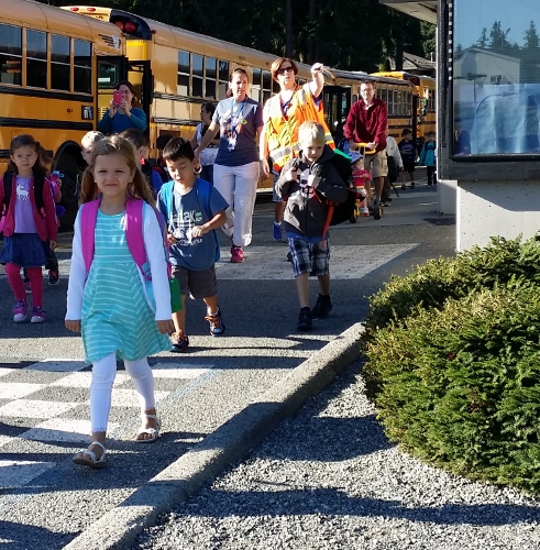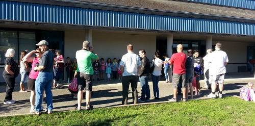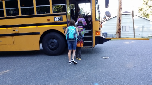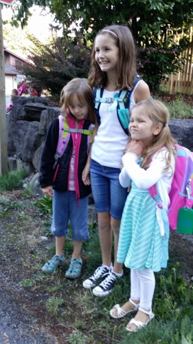 Lots of pictures as we took her to the bus and then drove over to the school to meet the bus and watch her go into her classroom!