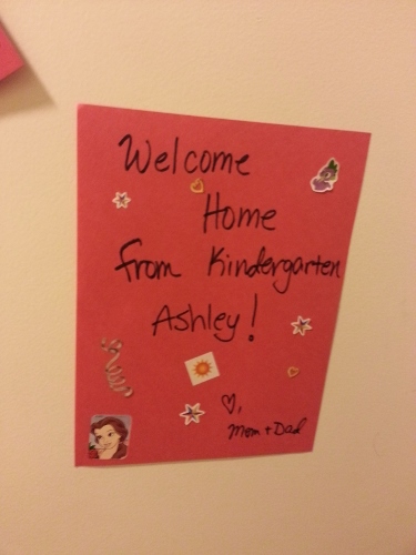 And of course she had a sign waiting for her and we had to take a video of her telling me about her day!