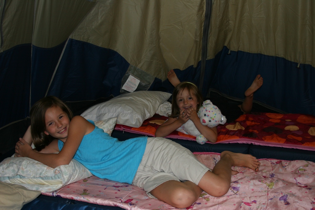 Relaxing in the tent – Our HUGE tent is set up in the garage awaiting the arrival of Grandma and the kids on Thursday!! The girls have been sleeping in it the past few nights.