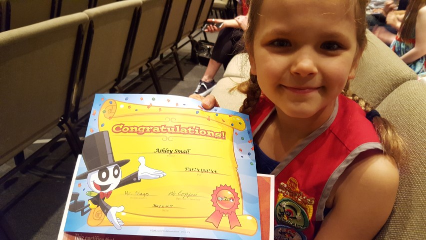 Ashley finished her last year as a Sparky and got the Sparky award for memorizing 150 verses (!!!!!!!) and completing all 3 Sparks books!