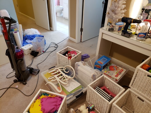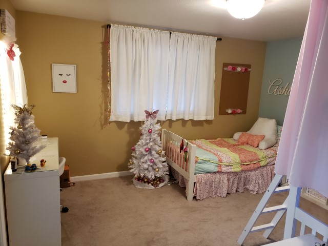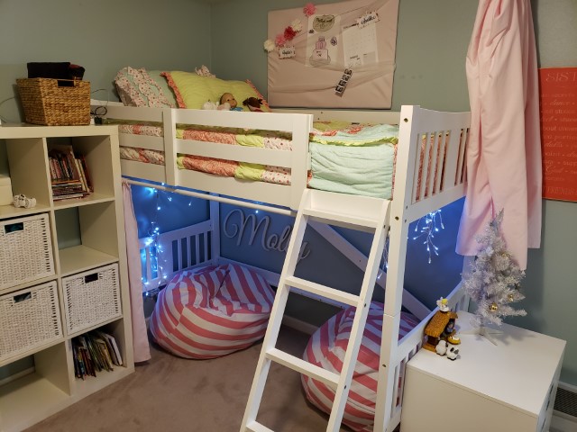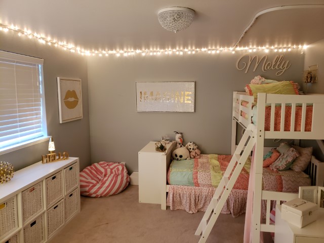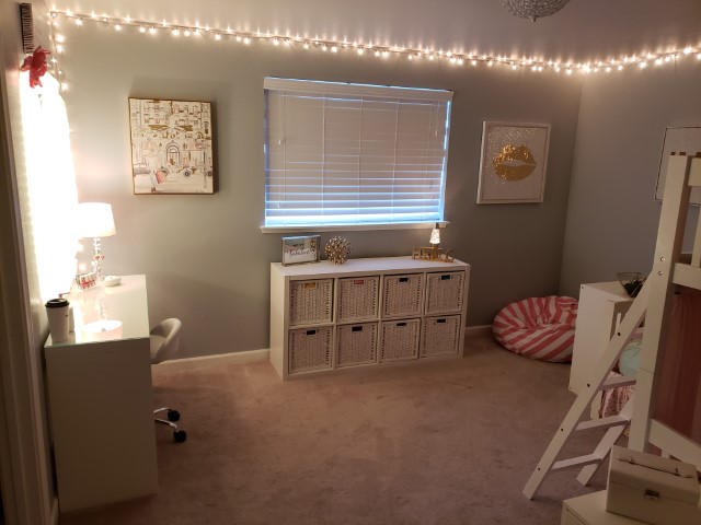 While Tom was off the past 11 days (kind of…he did a little work, but locally), we let the girls paint and redecorate their room. We kept the bedding and some of the decor, but let them choose the paint color and a few new decorations. We also moved some furniture around and got a few new storage cube bookshelves from IKEA. There is so much more space and we decluttered a lot!