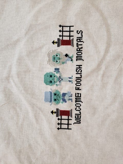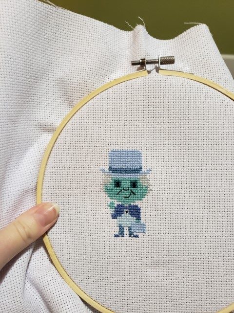For Mother’s Day I got supplies to make a Haunted Mansion cross stitch. On Sunday I finished the first Grim Grinning Ghost. 🙂