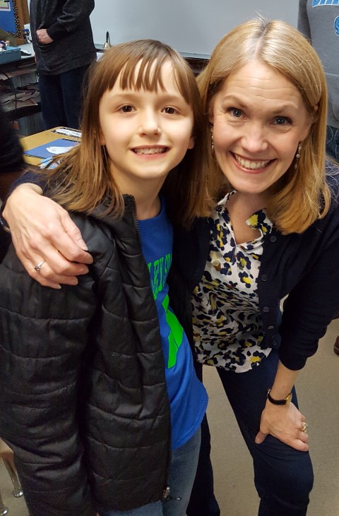 Molly was chosen by her class to be on the Student Leadership Team, so she had to be there early to help pass out brochures to families as they arrived.