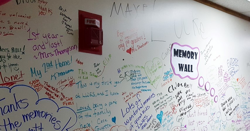 First, because the current buildings are being torn down this summer, the kids and parents got to write on a memory wall with sharpie!