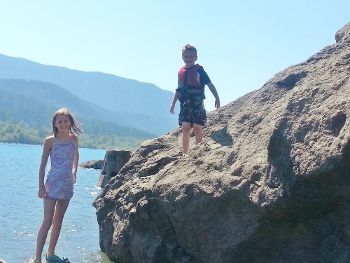 Sage had wanted to swim out to this rock all summer and we finally made it to the lake. Unfortunately, the water level was really low, so we just walked out to it. It was still fun, but not quite what she was looking forward to.