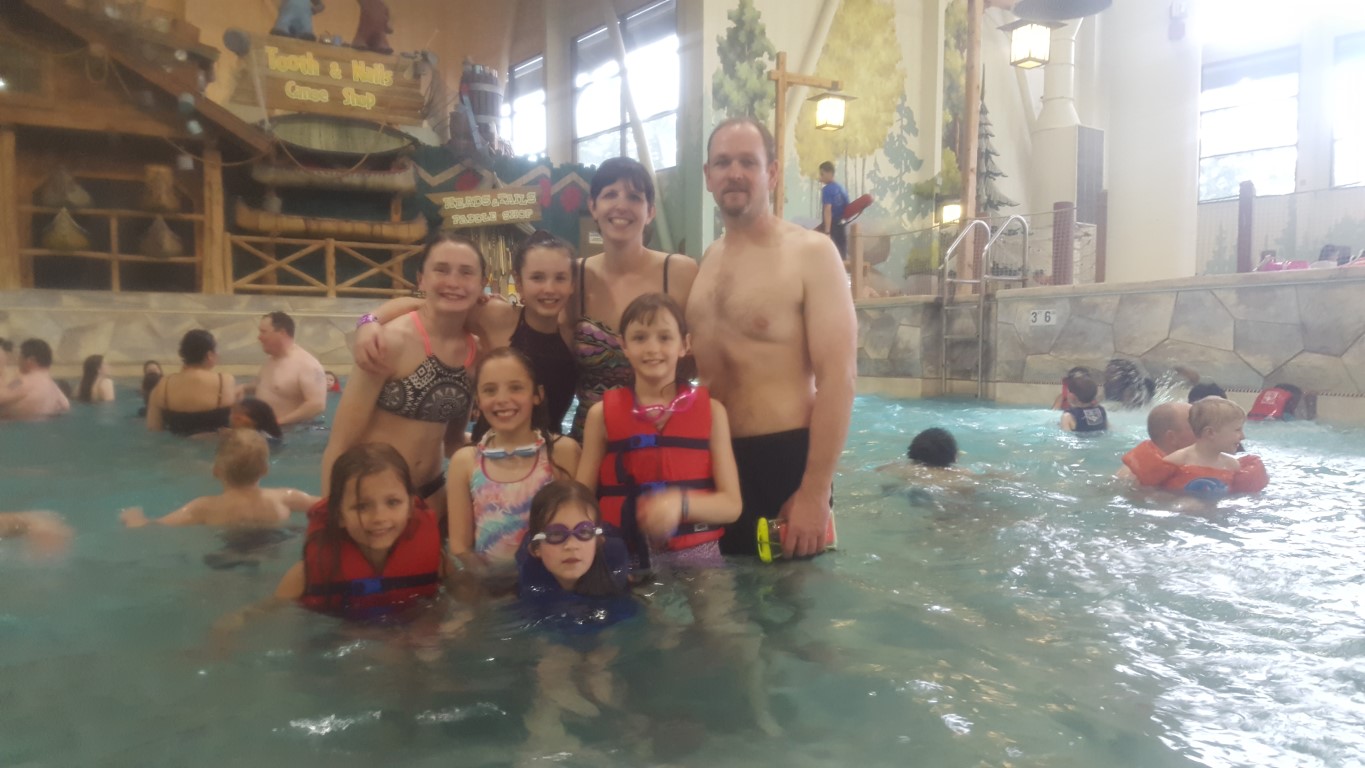 The girls have been asking to go to the Great Wolf Lodge for a long time.  But every time I looked, the prices were so high!  I finally found a Groupon for a great deal and got it!  The Groupon was for a suite that could sleep 8 people and included water park wristbands for 8 at no extra cost!  So Tom and I let the girls each bring a friend.