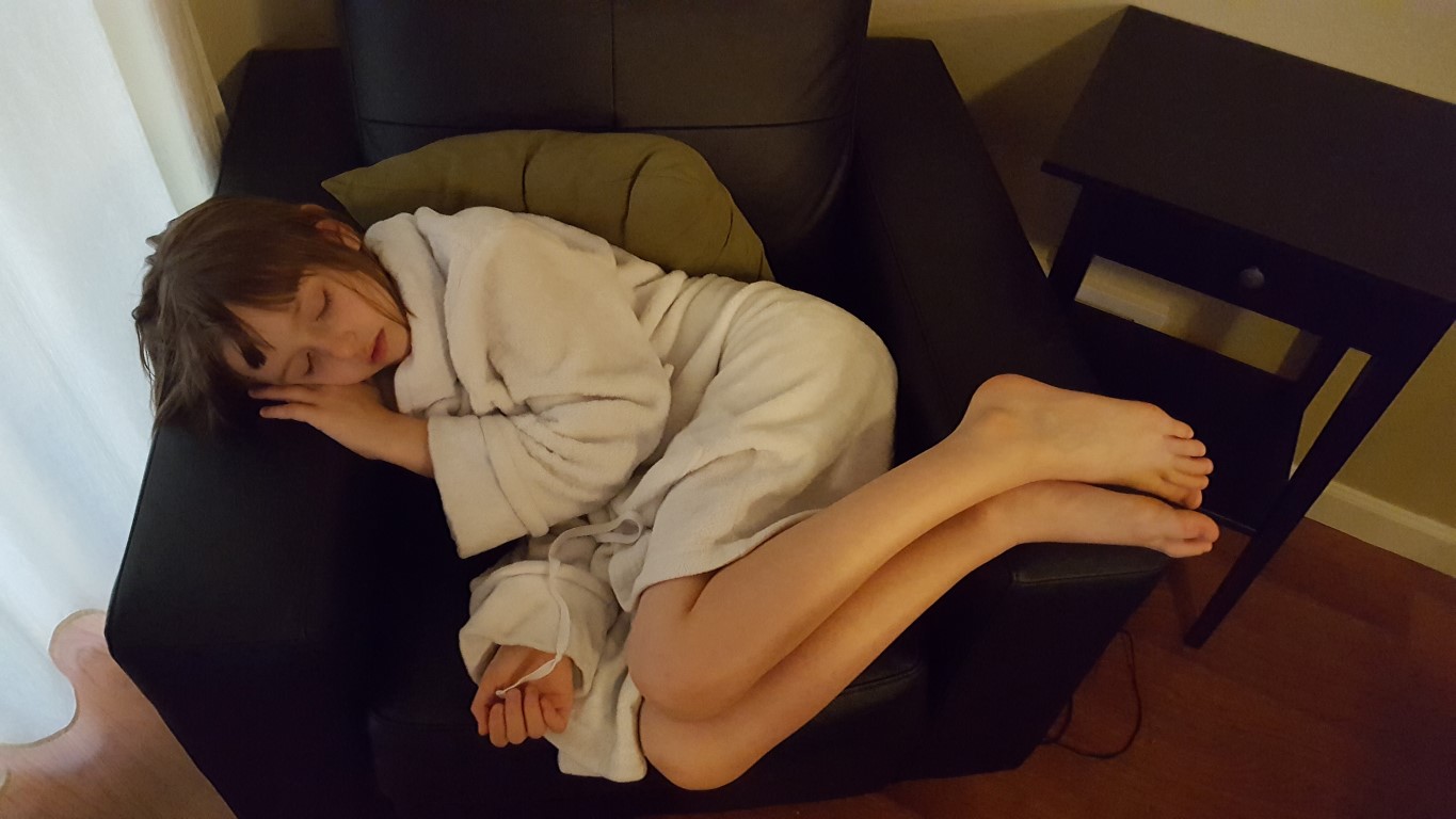 When we got there around 11, our suite was ready.  It was nice to be able to take our stuff up to the room and then head down to the water park for the rest of the day.  The suite was perfect.  2 queen beds and a sofa bed for the girls and a separate bedroom and bathroom for Tom and I.  Perfect!!