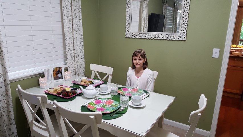 It’s hard to believe that Molly is old enough for our special Growing Up Day! I set up afternoon tea for us using some of our new tropical dishes. I took time to plan what we were going to talk about, got her a frame with her picture in it and a print out of Philippians 1:9-11. We talked about how God desires for us to be set apart from the world, how He desires to use us to accomplish His will, and how Dad and I are here to help her become the woman God desires her to be. We also talked briefly about modesty and what the Bible says about that. Then we moved into talking about how her body is going to change as she gets older.