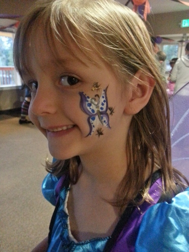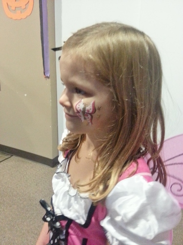 We went to a Halloween party down at the clubhouse last weekend. The girls got their faces painted, decorated a bag and a cookie and saw a few friends from the neighborhood. (I love where we live!)