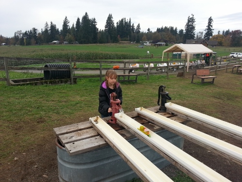 Molly and Ashley call this the marshmallow ride – lol. A tractor pulls these barrels around a figure out.