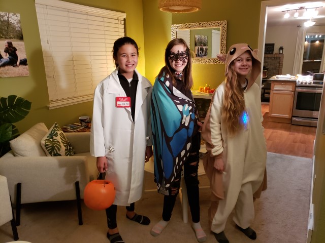 Halloween looked a little different for Tom and I this year. We actually stayed home and passed out candy. Ashley went with neighbor friends and their families. Sage went to a friends a house and Molly and 2 friends went around our neighborhood. It was a quiet evening for us and the girls all had fun!