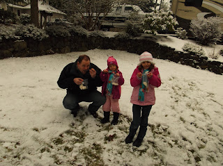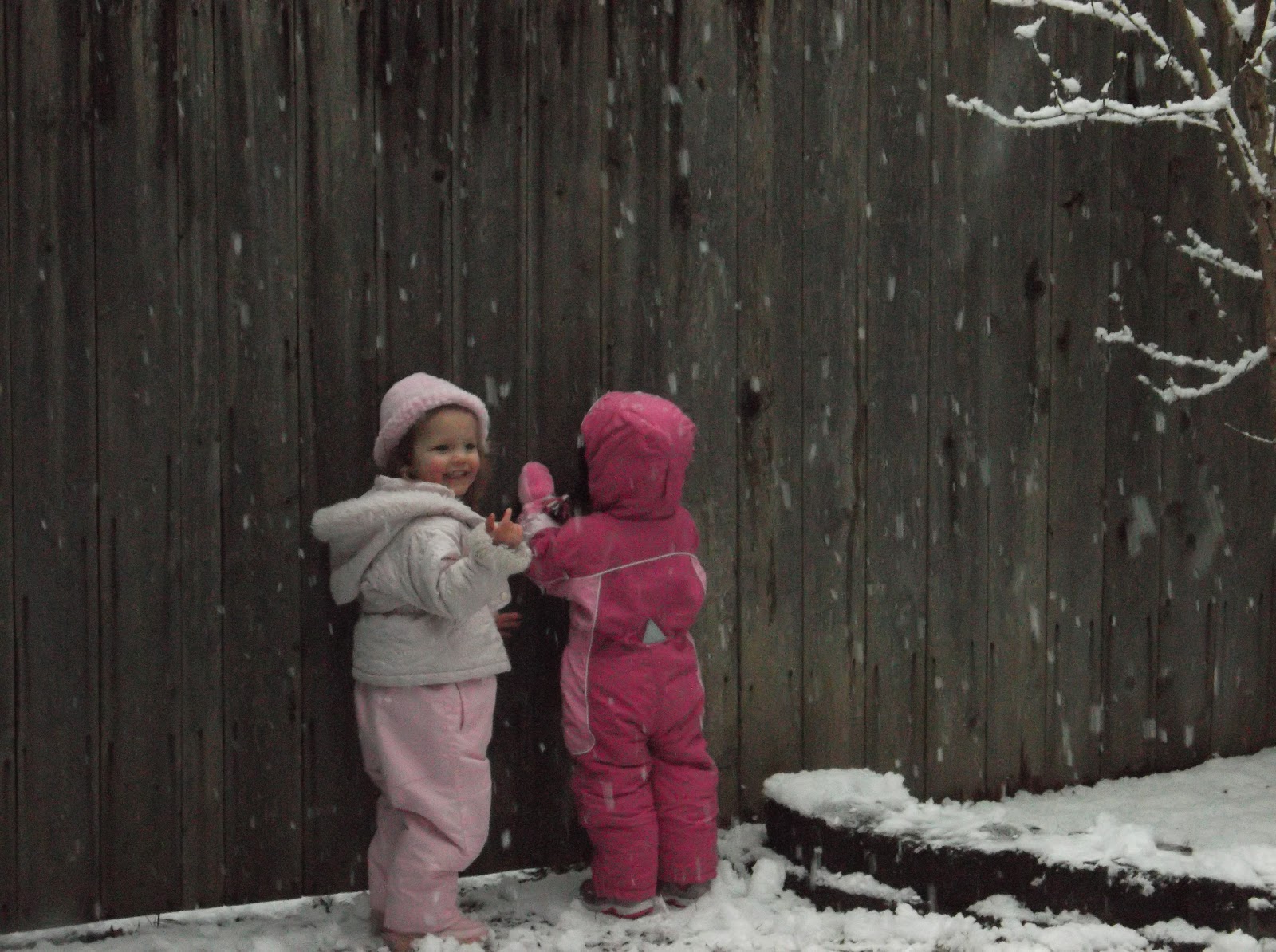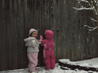 Ashley and Kaydence trying to hide from getting a snowball thrown at them . . . it didn’t work!