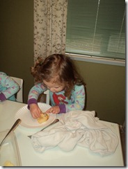 Easter morning before church, we made Resurrection rolls (croissants wrapped around a marshmallow that disappears when baked, leaving an empty hole in the middle.)  It was the perfect way to start off Resurrection morning before church. We were also able to open our last Resurrection egg (which of course was empty as well) before we headed out the door.  Here are the girls checking out the empty “tomb”.