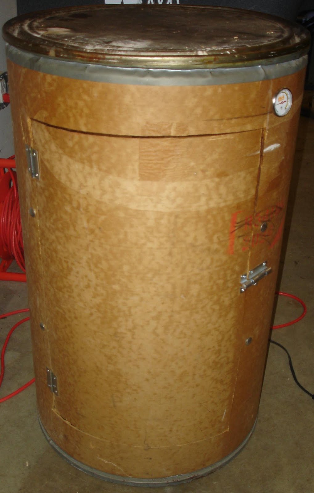 I know you’re wondering why I’m taking a picture of this huge barrel . . . but if you would have been at our house for dinner last night you would know by the taste of the YUMMY burgers. Tom built a smoker out of an old storage barrel. Crazy! So far this week we’ve been able to enjoy a smoked chicken, smoked mozarella and smoked burgers. I have a feeling we’ll be using this a lot in the months and years to come! His main motivation for this, besides wanting one for a while now, is that he and a friend are getting a whole pig next week and he wants to be able to smoke some of the meat. Pictures of 2 chefs and a dead pig to come . . .