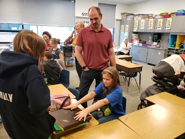 Ashley showing us her classwork during Celebration of Learning. (Her teacher was out that night, so no photo of them together.)