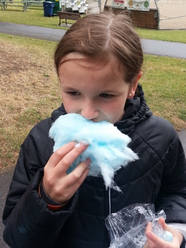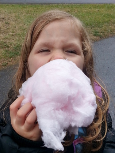 Sunday afternoon, we headed over to the park (in our rain boots, coats and with umbrellas) and enjoyed time looking around there and of course having cotton candy!  No rides for us this year, except for a little train around the park and the bus/shuttle ride there.  Even though 2 of them are on a bus twice a day, they still think it’s so much fun to ride on it as a family.