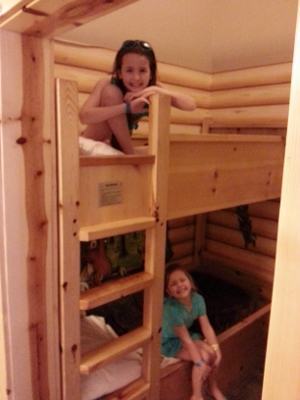 We chose a Kid’s Cabin room this trip, which was the perfect size for our family. I loved the fireplace!