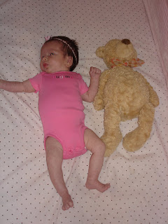 With Sage and Molly we took a monthly picture of them next to a bear so we could see how much they grew each month. Below are the start of Ashley’s bear pictures. I took the first one at one week old and the second one I took today on her one month birthday. Happy birthday Ashley!