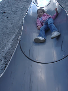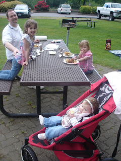 After stopping at all the lookouts, we headed back north and stopped in Olympia to BBQ dinner in the park. The girls had a great time playing on the playground while Tom got the BBQ going and grilled our dinner. As we were eating dinner, some clouds came in and cooled it off a lot and we got in the car just as it
