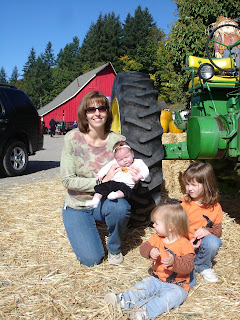 Supposedly our nice dry weather is over as of this week, so we headed out to the pumpkin patch yesterday after church. We found one in Renton that we liked. They had a lot of animal for the kids to look and there were so many great pumpkins! Sage, of course, wanted them all. But we settled for 2 large ones and then 1 small sugar loaf pumpkin to cook with. Not too many meltdowns while we were, so all in all, a good trip. 🙂