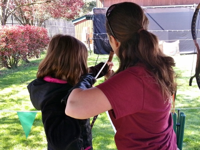 Sage has been wanting to try to shoot a bow and arrow. Today was her chance. 🙂 The girls were very excited to try archery.