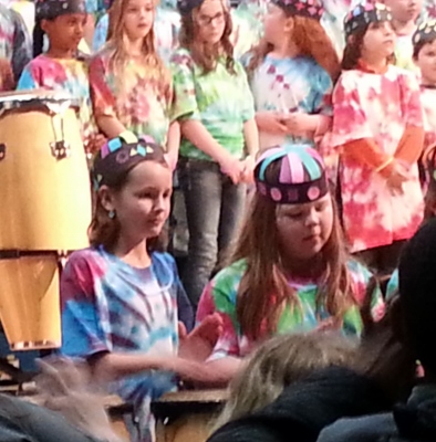 Last night was Sage’s 3rd Grade African Concert at school. She has been talking about it for weeks! They tie-dyed shirts, made hats and created artwork especially for the show. They played drums, chanted and sang. I think it was my favorite school concert so far. She had a solo in one of the songs (see video below.) 🙂