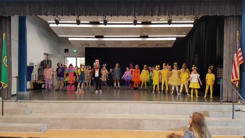 With the new school and sound system, there was a lot of distortion and feedback. Unfortunately, Molly’s microphone sounded distorted the entire time, which was super disappointing (and annoying). There were problems the entire year with the sound and we had hoped it would be fixed by the end of the year, but no luck. 🙁 But even with the feedback, Molly was AMAZING!