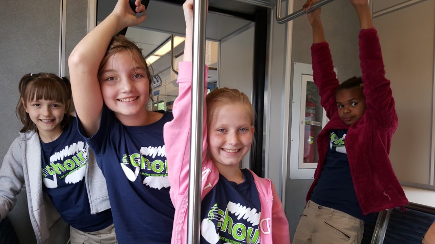 At the next stop, one of their friends from choir and her mom got on! So fun!!