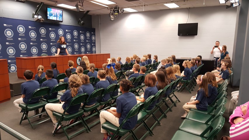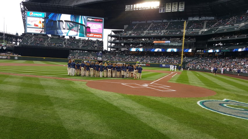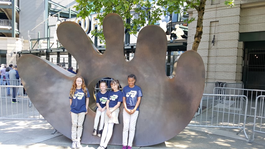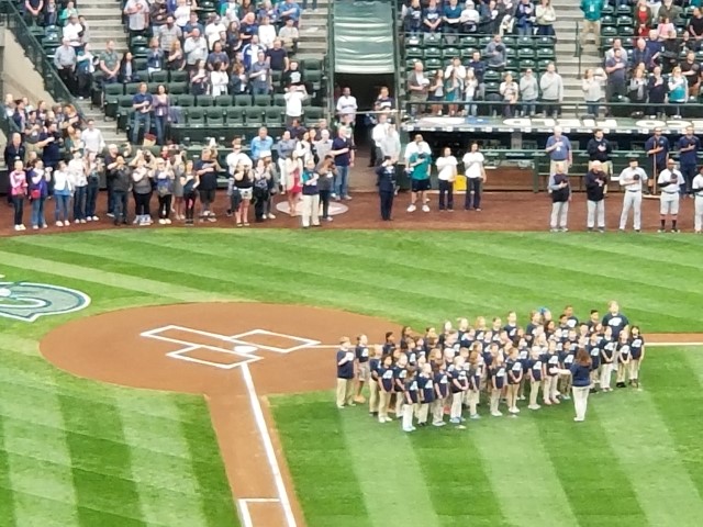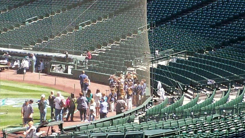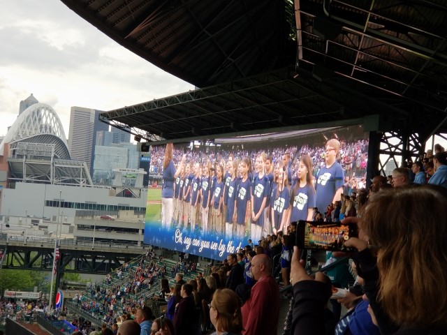 What an AMAZING NIGHT this was! Molly’s 4th and 5th grade choir from school sang the national anthem at the Mariners’ Game on May 19th! We took the light rail up to Seattle for the sound check. Tom, Ashley and Sage drove up and met us there for the game.