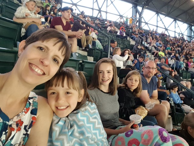 While we are not big baseball fans, it was still a fun night! Molly was so glad she had learned to play baseball this spring so she knew what going on in the game!