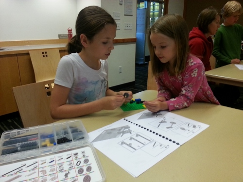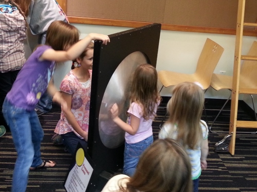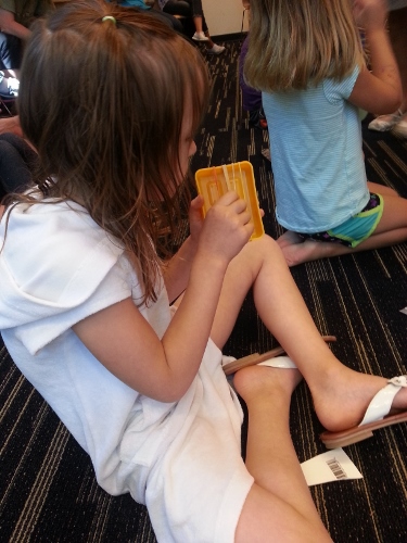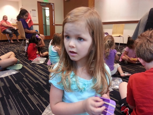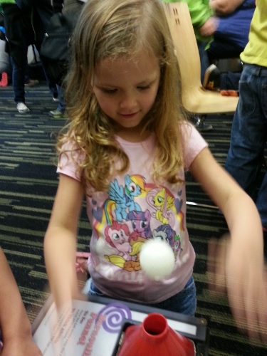 The Pacific Science Center came and set up some exhibits in the library a few weeks ago. It was CRAZY crowded, but I think the girls still had fun.