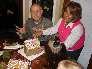 One of the highlights (at least for the girls, maybe not for my Dad and Oralia), was making a Gingerbread House. (Thanks Aunt Patti for getting those!) Sage was so excited and loves looking at the completed house. Molly tried to take the candy off for the first few days, but luckily has given up now after being told many, many times that it was yucky. 🙂