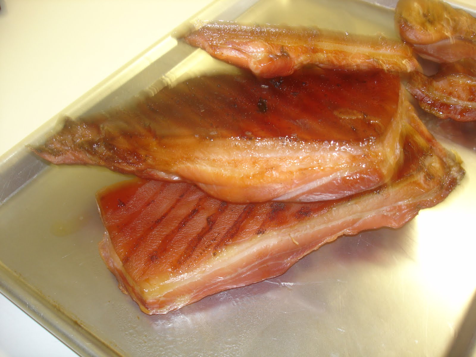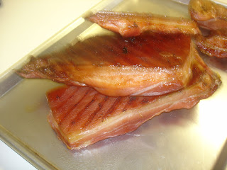 The bacon after it was cured and smoked