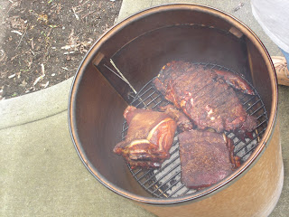 A few weeks ago, Tom and his friend Marcus orered a whole pig from one of their suppliers at work and on their day off, cut it up for us to eat. They did it at our house, which was great, so the girls and I could see the process as well. Tom smoked some of the meat and also cured some. We love having all the meat in the freezer ready to go.