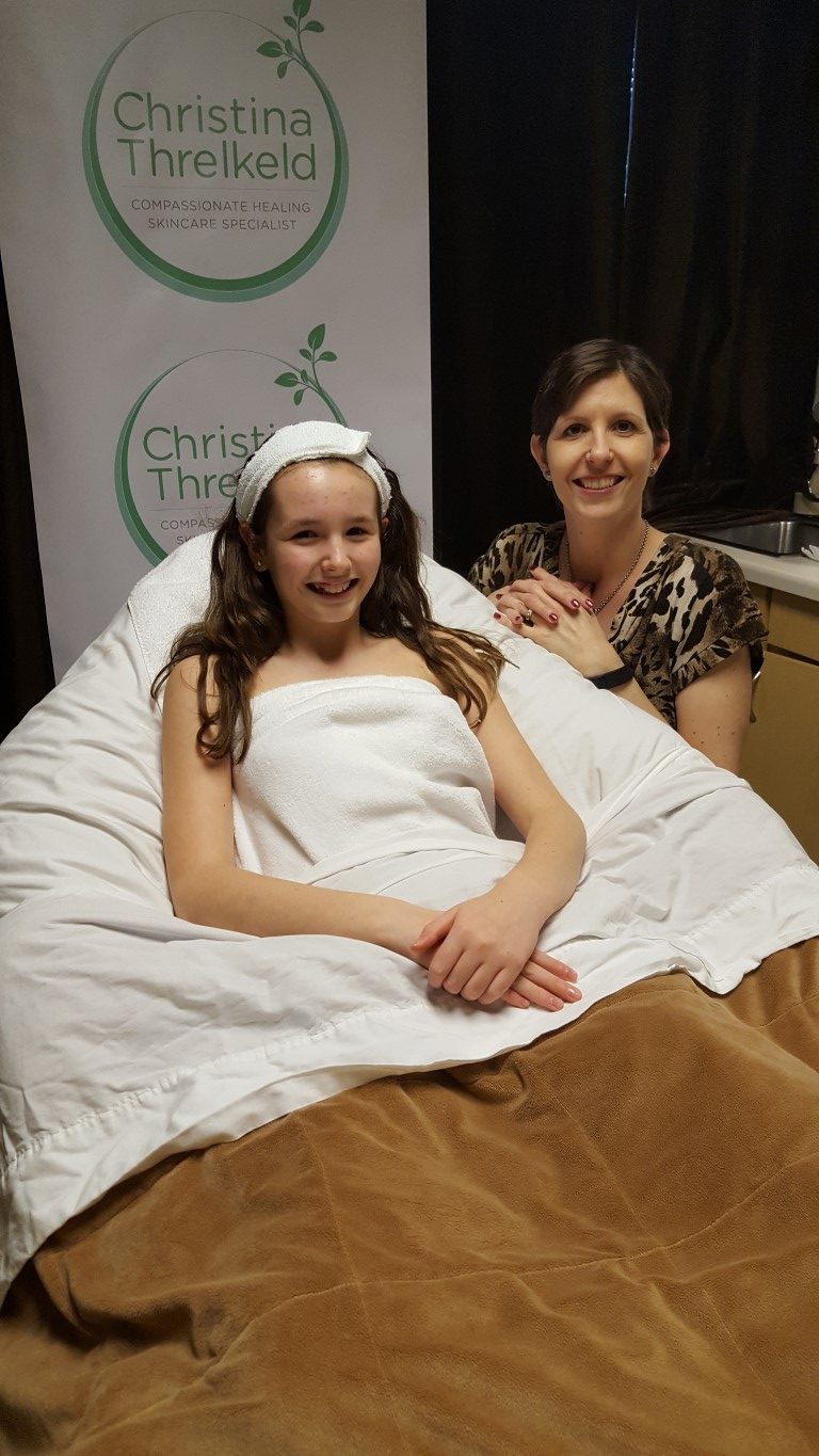 Ever since Sage used super oily makeup for her SHREK performances, she been having trouble breaking out.  I ahd been thinking about taking her to see Christina to get a mini facial and to talk about basic skin care, so spring break was a good time to do that.