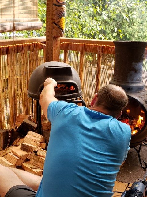 We relaxed around the house in the afternoon. Tom had been wanting to make pizza in the pizza oven on our deck, so we did that for lunch. The pizzas were AMAZING and we just love relaxing out on our deck!