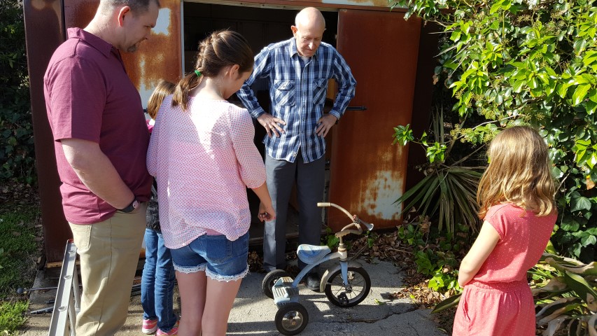 My Dad got my old tricycle out of the shed and showed it to the girls.