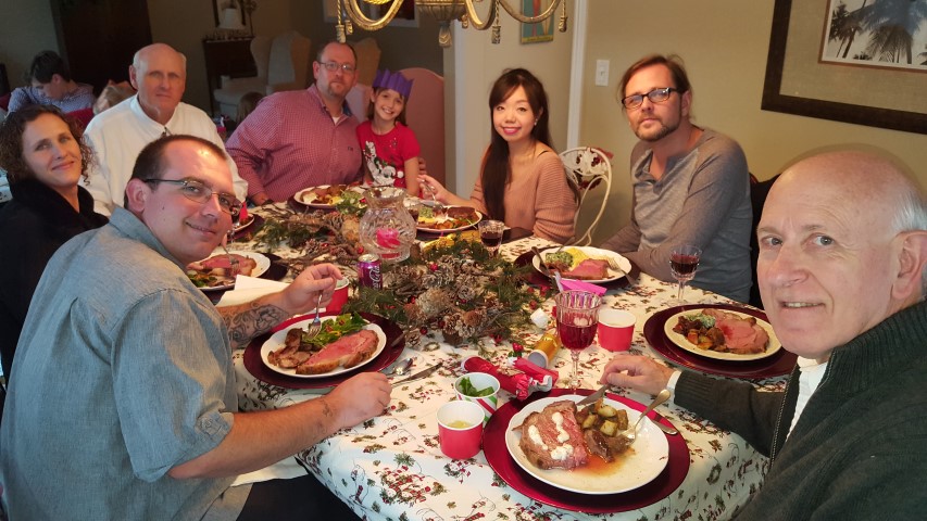 Enjoying a yummy Christmas dinner – prime rib and goose!