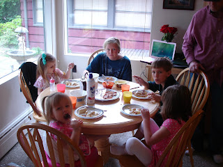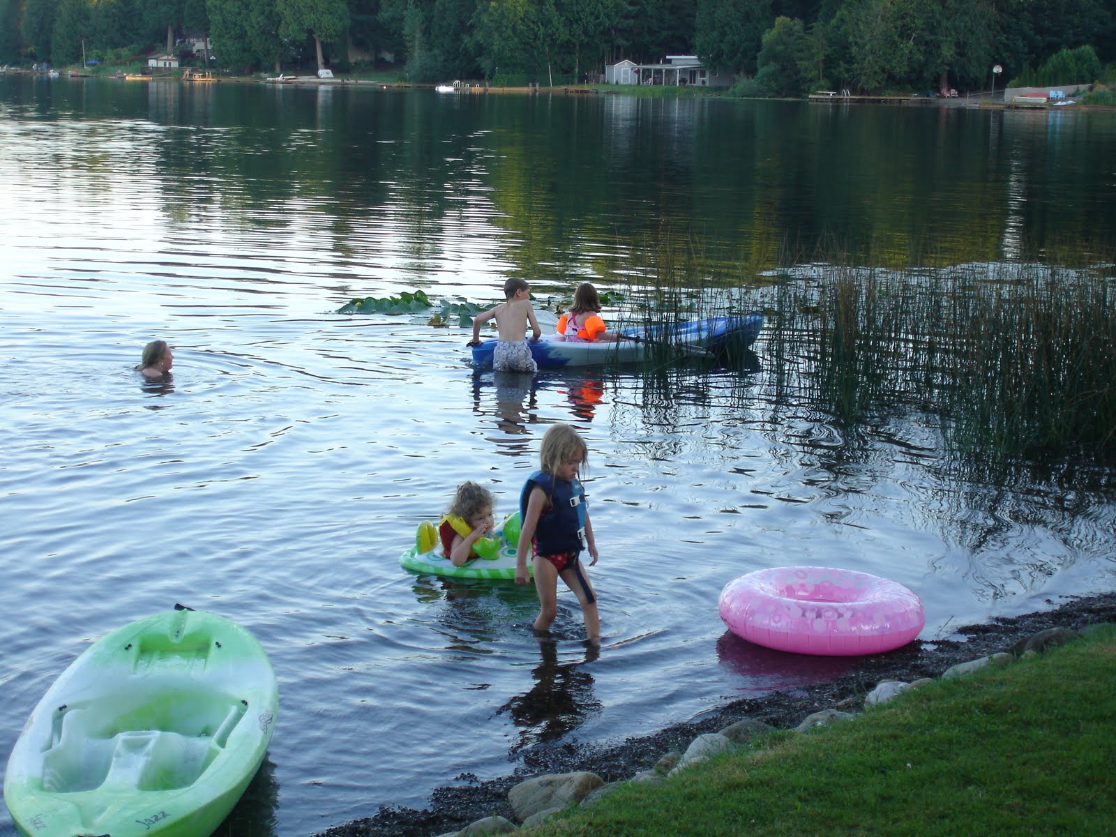 We are in the middle of sharing Tom’s parents vacation with them up here on Lake Morton. Then rented a house on the lake for 2 weeks and have graciously allowed us to stay with them. 5 of the 6 kids are in the bunk house (and suprisingly sleeping pretty well). It’s like a big slumber party every night! We LOVE spending the late afternoon and evening out by the lake and have been having so much fun fishing, kayaking, canoeing and swimming. Oh, and eating smores. 🙂 Here are a few pictures, including a few from Ashley’s first birthday party that we had here last Wednesday. I’ll post more pictures when I get them off of Mom and Dad’s camera.