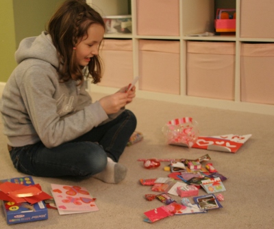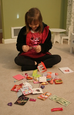 After school, the girls looked at all their valentines and then we headed off to swim lessons.